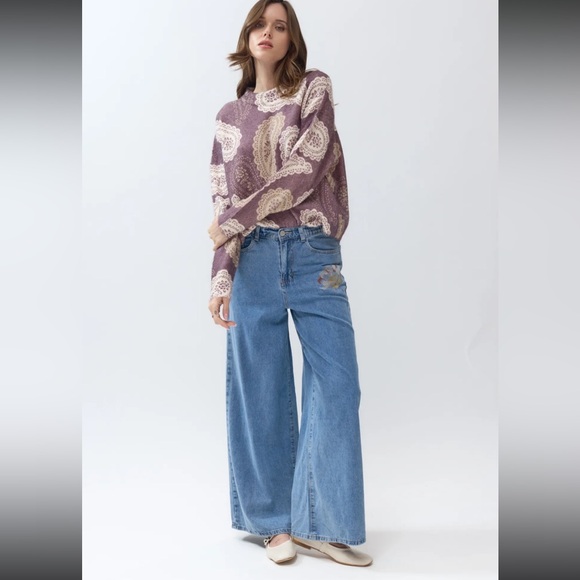 FROM PARIS FRANCE Wide-Leg Blue Jeans
