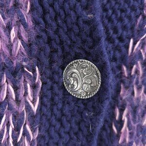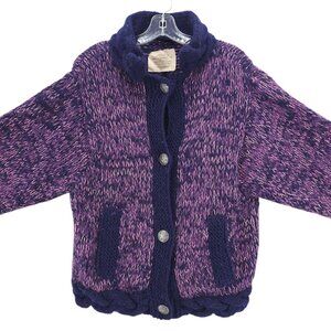 FRON ENTERPRISES 100% Virgin Wool Cardigan Blue Purple Marled Hand Knit LARGE??