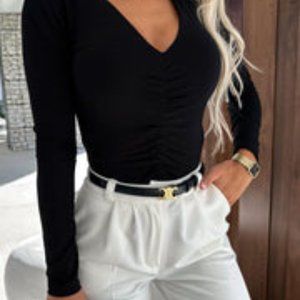 FRONT RUCHED BODYSUIT TOP-BLACK
