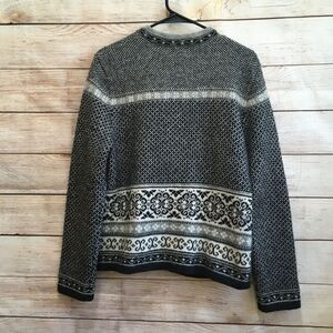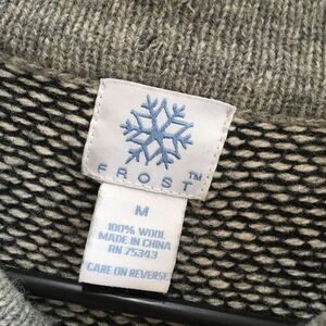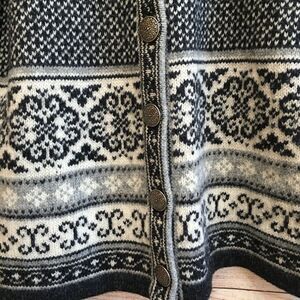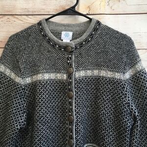 EXCELLENT CONDITION FROST 100% WOOL CARDIGAN SWEATER IN BLACK AND WHITE