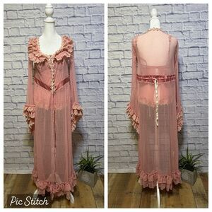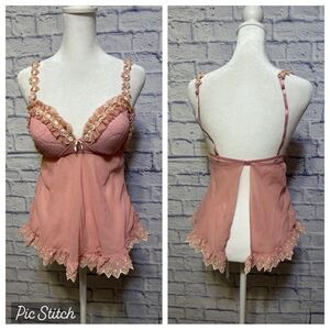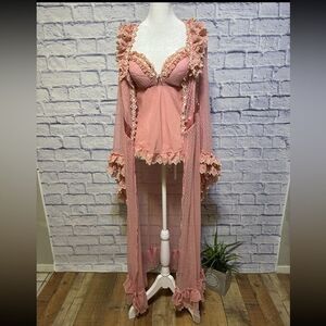 FRUIT DE LA PASSION SET ROBE, BABYDOLL, GLOVES, TIGHTS LINGERIE PINK LACE SMALL