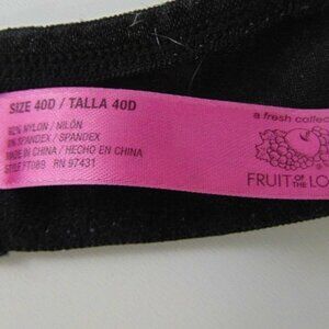 FRUIT OF THE LOOM Size 40D Black Bra