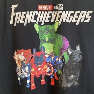 FRUIT of the LOOM HD Cotton Black T Shirt with Frenchievengers Print Size 2XL in excellent used condition.
