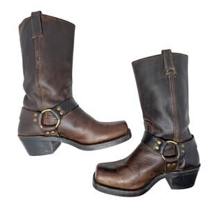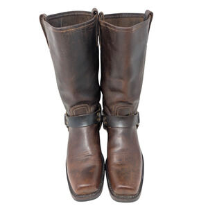 FRYE 12R Harness Square Toe Leather Dark Brown Boots Size 8.5