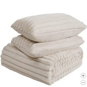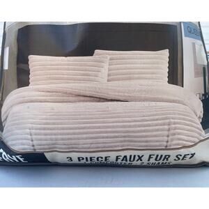 FRYE 2” Jacquard Channel, Faux Fur Comforter Set Cream
