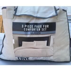 FRYE 2” Jacquard Channel, Faux Fur Comforter Set Cream