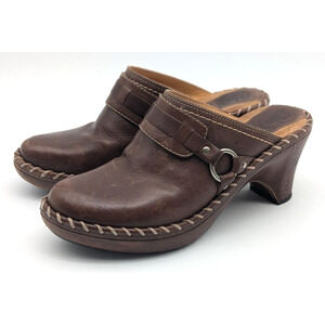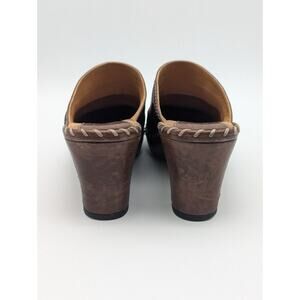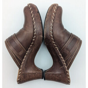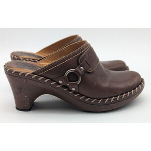 FRYE 70771 Charlotte Distressed Brown Leather Block Heel Clogs Women's 8M