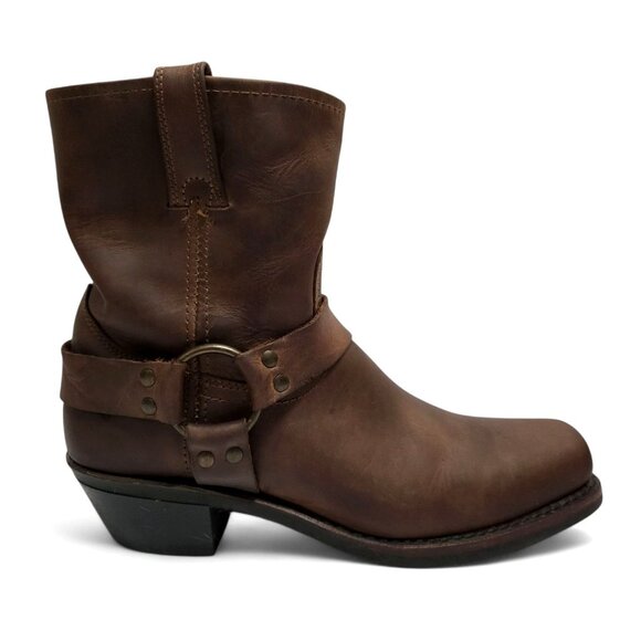FRYE 8R Harness Short Boot Brown Oiled Leather Western Cowgirl Moto Engineer