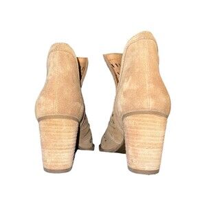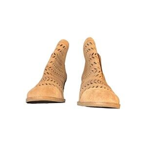 These ankle booties are made of high-quality suede and feature a convenient pull-on closure. The tan color is versatile and can be paired with almost any outfit, making them a must-have for your shoe collection. Whether it's winter, summer, fall, or spring, these Frye & Co booties are perfect for any season.