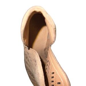 Bring your Boho shoe game with these Frye & Co Allister Feather Booties. The almond toe and mid-heel make them perfect for any occasion, be it a wedding, party, or casual outing. The perforated cutouts add a touch of elegance to the feather-inspired pattern, perfect for the artisanal fashionista.