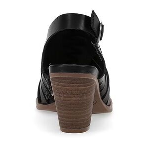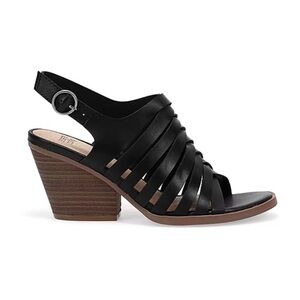 Elegant black wedges with leather strappy design. Perfect for versatile styling.