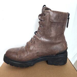 FRYE Allison Leather Combat Boots Lace-up Back Zip Brown Sz 8