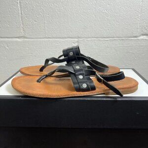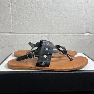 FRYE Avery Stud Thong Flat Sandal Black Leather Slingback Women's Size 11 B