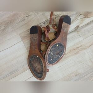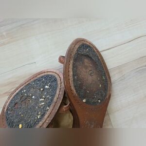 FRYE Avery Toe Ring Boho Leather Sandals Sz 7.5M Ankle Strap Studded Brown Low