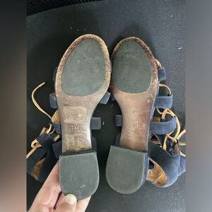 FRYE BLAIR SIDE GHILLIE WOMENS BLUE BROWN SUEDE GLADIATOR SANDALS SHOES