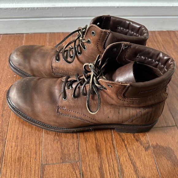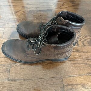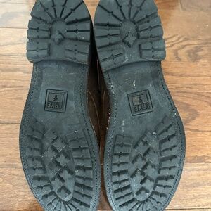 RARE MENS FRYE BOOTS, EXCELLENT CONDITION & TREAD, DARK BROWN WITH HIGH QUALITY DISTRESSED LEATHER BOOT LACES. BEAUTIFUL BOOT FOR CITY OR COUNTRY LIVING. HIGH QUALITY AND HARD TO FIND.