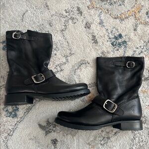 #FRYE #EngineerBoots #MotoStyle #ClassicLeather #TimelessStyle #WardrobeStaple #EdgyChic #BlackBoots