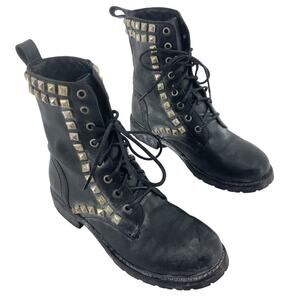 FRYE Black Leather Studded Moto Biker Boots Women's Size 7 Preowned