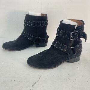 FRYE Black Suede Leather Studded Biker Booties Women’s Size 6 Preowned