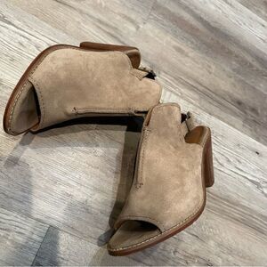 FRYE Bootie Women’s Size 8B Carolina Ash Peep Toe Suede Slingback Beige Neutral
