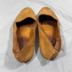 FRYE Brown Leather Camel Buffed Nubuck Slip on Milly A Line Flat Loafer Shoes 7