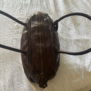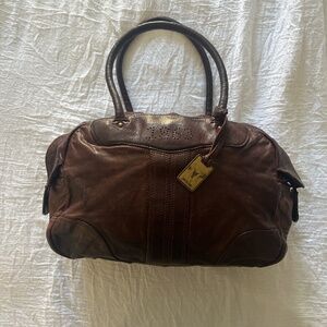 Frye Kira Carry All Satchel. Genuine brown leather, 12 inches by 15 inches.