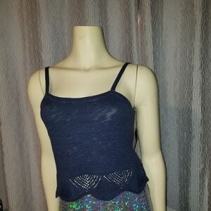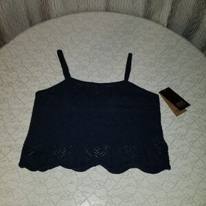 FRYE CROCHET TOP NAVY BLUE NWT CROCHET HEM TANK LARGE NEW WITH TAGS