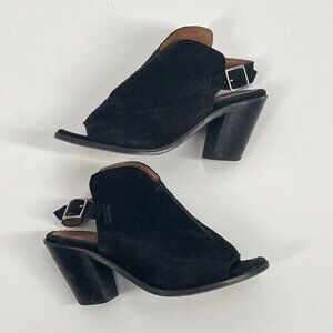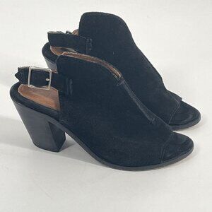 FRYE Courtney Black Suede Block Heel Open Toe Sandals Sling back Size 6.5 B