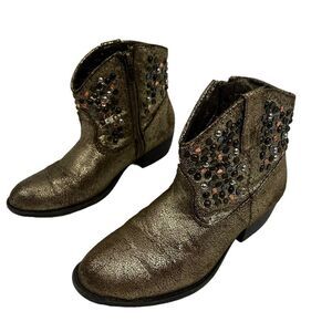 FRYE Deborah Studded Gold Metallic Short Side Zip Up Heel Girls Ankle Boots 1