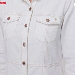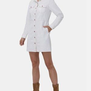 FRYE Denim Dress. Size medium. Bone color. 100% cotton. Button up. Super cute. Short dress. Long sleeve denim dress.