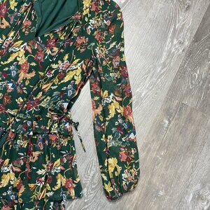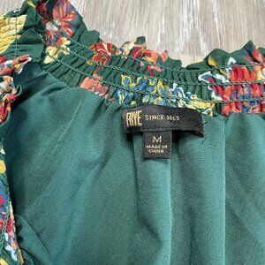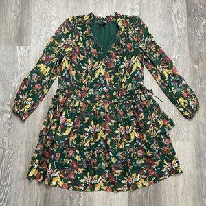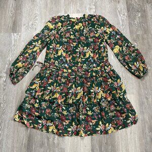 FRYE Floral Dress Size Medium Tie Split Neck Ruffle Tiered Green BoHo