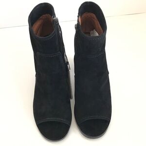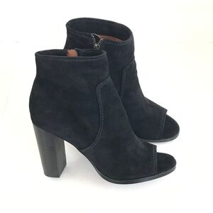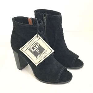 FRYE Gabby Peep Bootie Heeled Boots Suede Black Heels Women’s Size 9.5