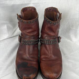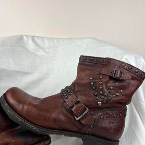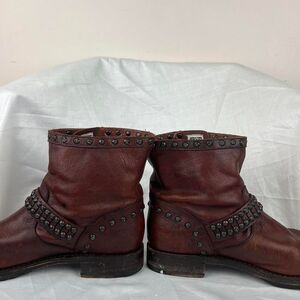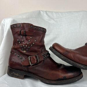 FRYE JENNA Black Leather Studded Ankle Moto Engineer Biker Boots Women's Size 11