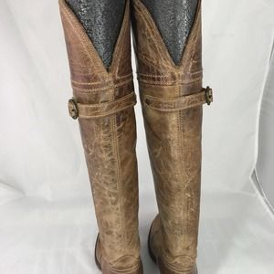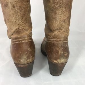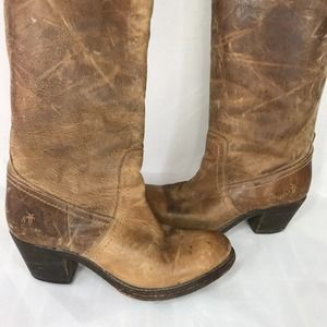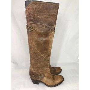 FRYE Jane Fold Over Knee Pull On Leather Stacked Heel distressed