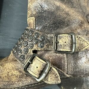 FRYE Jenna 76416 Women Leather Tall Boots 8B Studded Distressed Harness Brown