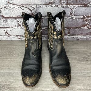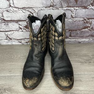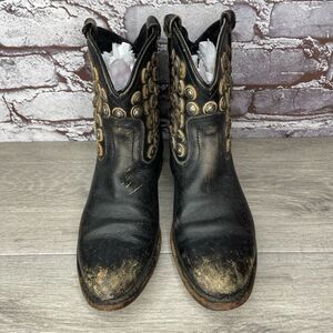 Selling FRYE Jenna Disc Short Black Distressed Leather Rivet Stud Boots Women 6B US/36.5EU