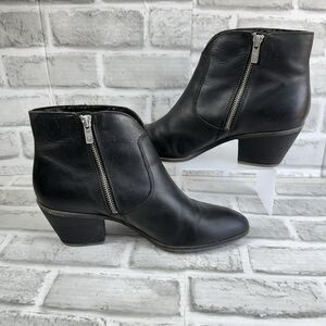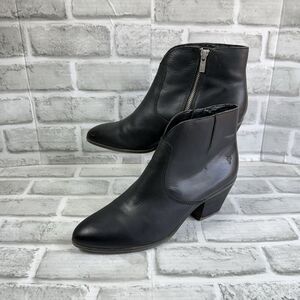 FRYE Jennifer Women's Size 9 Black Leather Almond Toe Block Heel Ankle Booties