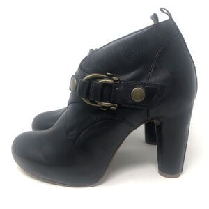 FRYE LIV Leather Buckle Bootie Womens Size 8.5 Y2k Black Platform High Heel Moto