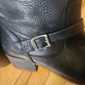 FRYE LYNN STRAP SHORT Women's Black Leather Ankle Boots SIZE 7.5 western biker