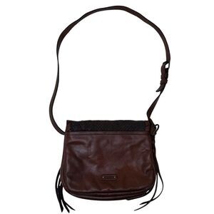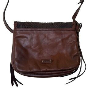 FRYE Layla Flap Saddle Black and Brown Leather Crossbody Bag is gentle used. The crossbody strap is adjustable, but not detachable. Only flaw on the is the bottom corner has slight distress please see all photos bag is still in great condition. 100% made with leather a true gem. The flap has textured leather. No stains, odors, or other flaws. The back pocket is clean. Interior has multiple compartments. Two zipper pockets & open compartments. Made in Mexico genuine leather. Interior is clean no flaws.