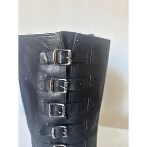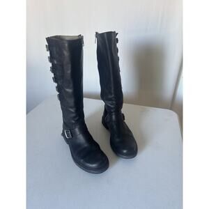 FRYE Leather Boots 8 Black Knee Buckle Round Toe Distressed Tall