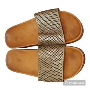 Elevate your summer style with these stunning FRYE Lily slides. Crafted from high-quality perforated leather in a gorgeous gold hue, they are perfect for any occasion. The slip-on design and comfortable sole make them easy to wear, while the laser cut-out details add a touch of elegance to the overall look. These sandals feature a sturdy leather upper, ensuring durability and long-lasting wear. The FRYE Lily slides are designed with a classic slide silhouette, making them versatile and easy to style with any outfit. Whether you're dressing up for a special occasion or running errands around town, these slides are the perfect addition to your wardrobe.