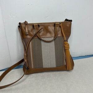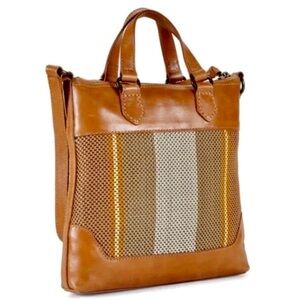 FRYE MELISSA LEATHER WOVEN STRIPED TOP HANDLE ZIP CROSSBODY SMALL TOTE BAG
