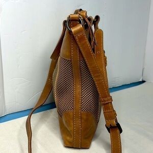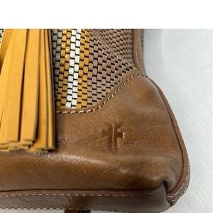 FRYE MELISSA LEATHER WOVEN STRIPED TOP HANDLE ZIP CROSSBODY SMALL TOTE BAG