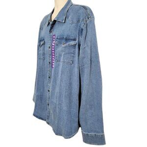 FRYE Medium Wash Blue Denim Button-Down Jean Western Shirt - NWT Men's XXL