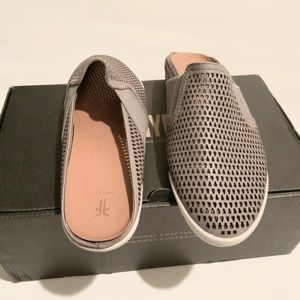 FRYE Melanie Gore Perforated Mule Sneaker Pale Blue Gray Leather Casual Flats