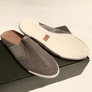 FRYE Melanie Gore Perforated Mule Sneaker Pale Blue Gray Leather Casual Flat Shoe Loafers