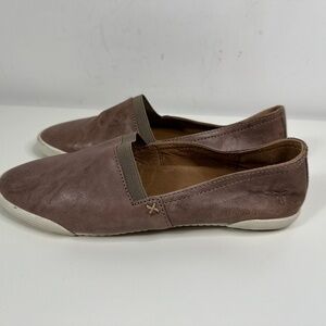 FRYE Melanie Slip On Leather Flats •Women Size 6.5 Metallic Bronze Brown Loafers.