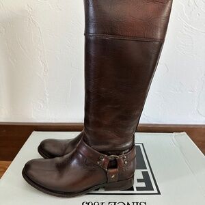 FRYE Melissa Harness Riding Boots - Size 6 - Color: Dark Brown