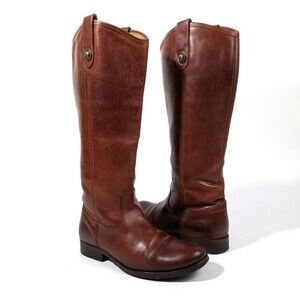 The Melissa equestrian-inspired tall boots are made from hard-wearing leather design. Contoured through the ankle for support and the most flattering shape, they have a modernized topline with newly updated Frye signature button details at the pull tabs providing a tailored look. Slight heel with lug soles.